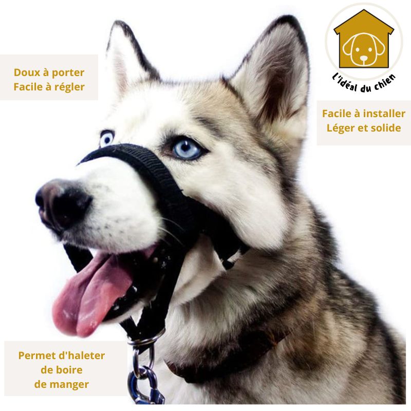 SUPERIORITÉ: STOPTI est fait de nylon solide et durable. Confortable et doux il empêche les abrasions de la peau. La sangle réglable en nylon permet aux chiens de respirer et de boire aisément.